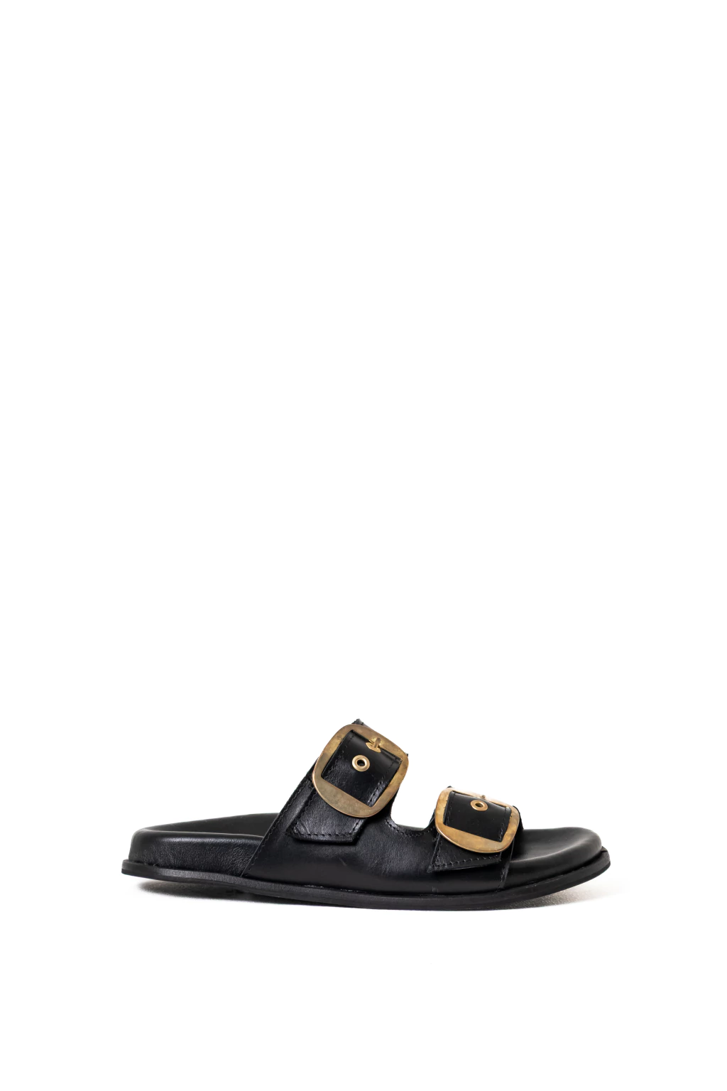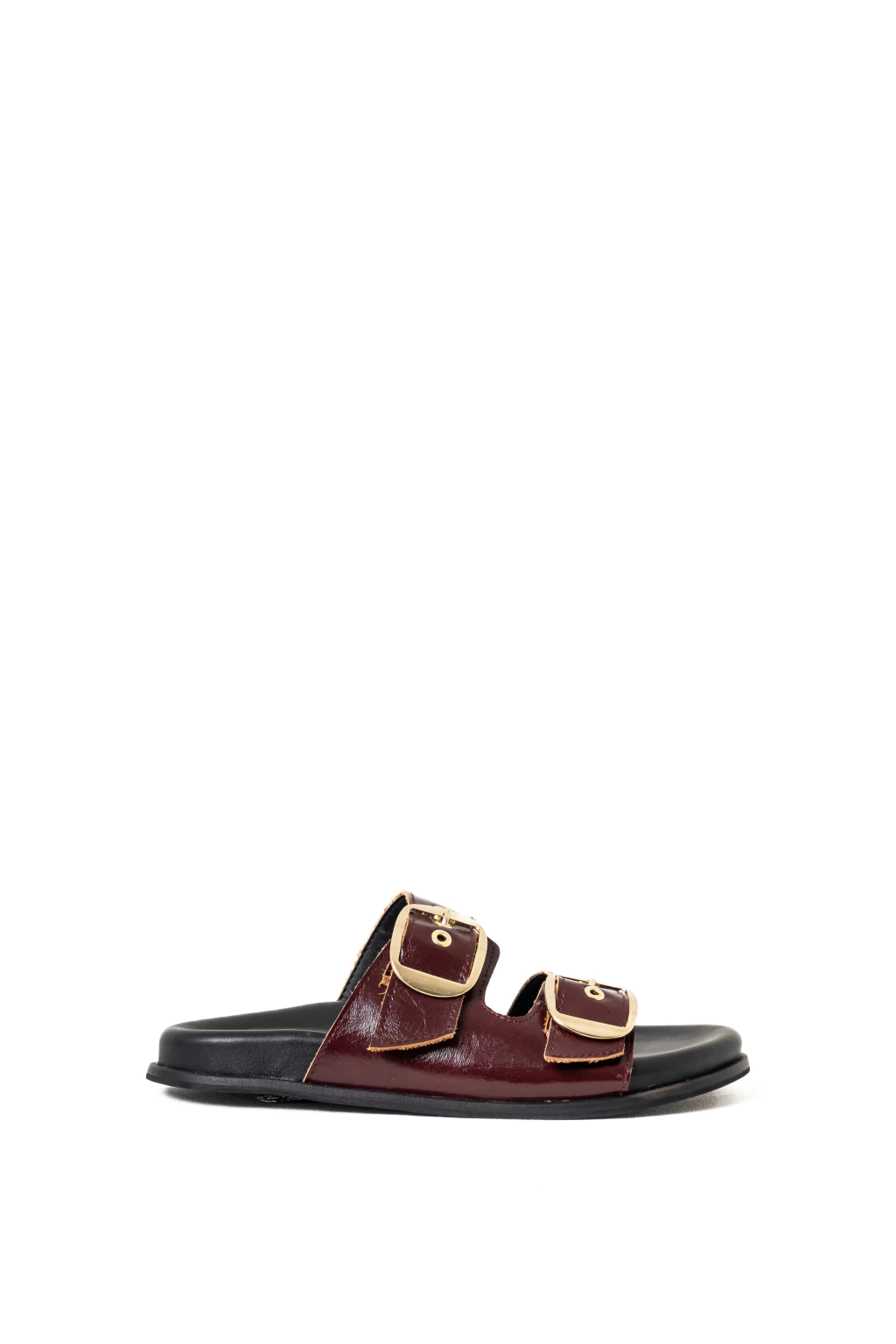 Sandalia de cuero con hebillas.Tablatura talles:35: 24 cm; 36: 24,5 cm; 37: 25 cm ; 38: 25,7 cm ; 39: 26,3 cm; 40: 27,2 cm.