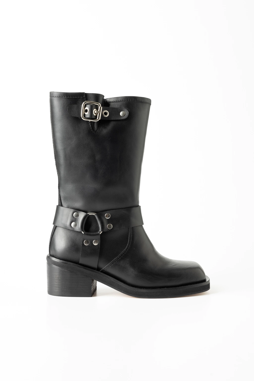 Leather boots with a square toe and 1.5 in heel. Boot length: 10 in, circumference: 14.9 in (dimensions may vary depending on size). Made in Argentina.