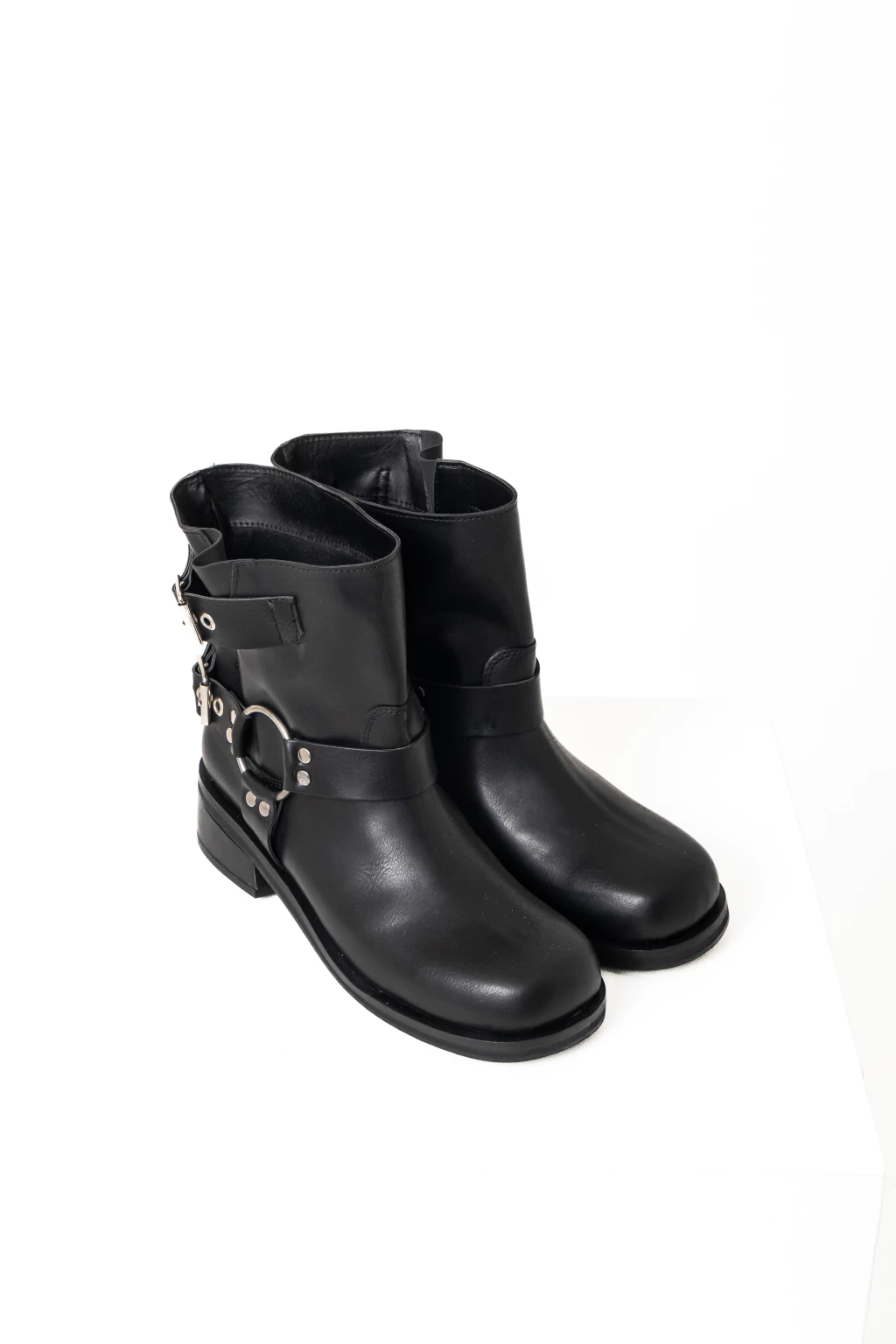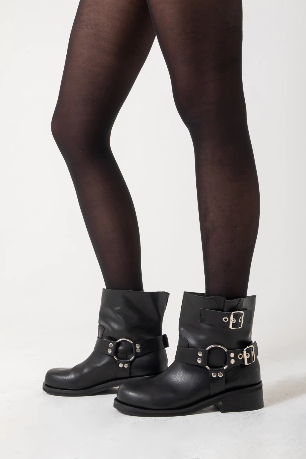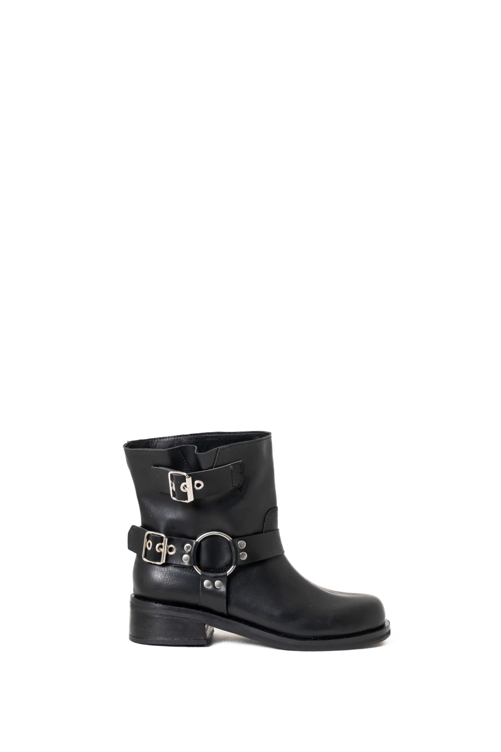 Low-shaft eco-leather boots with a 0.6 in sole, 1 in heel, and a shaft height of 8.3 in. Shaft circumference 13.7 in. Made in Argentina.