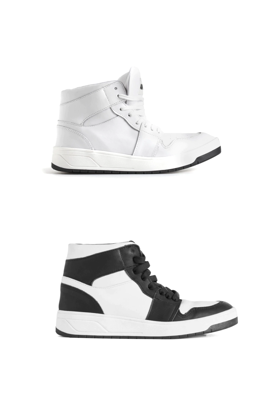 Zapatillas de cuero combinadas blancas y negras con base de goma. Industria Argentina.